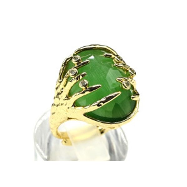 Кольцо с кошачьим глазом из ювелирного сплава цвет зеленый (иск.)