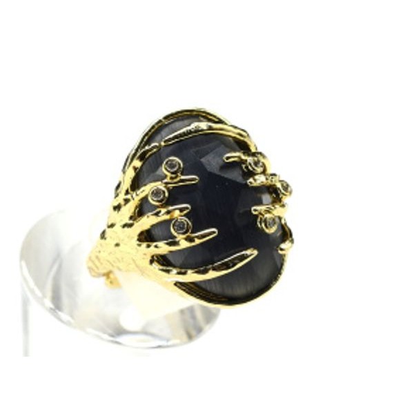 Кольцо с кошачьим глазом из ювелирного сплава цвет черный (иск.)