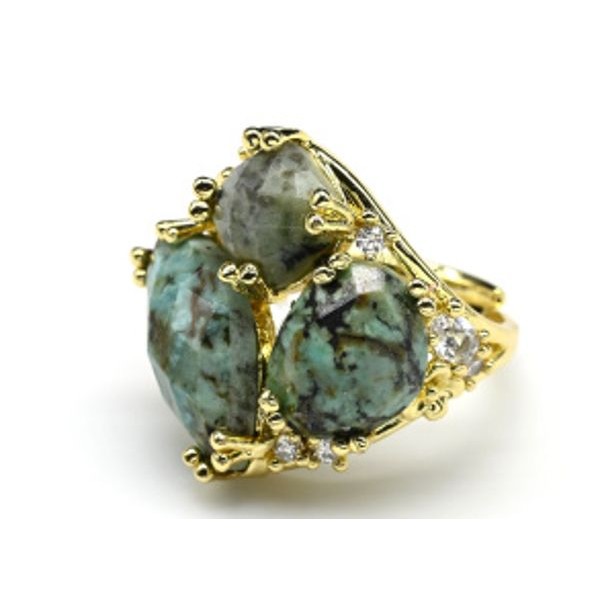 • Кольцо с хризоколлой "Геометрия" из ювелирного сплава