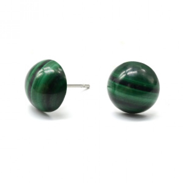 Серьги гвоздики малахит 9-10мм.