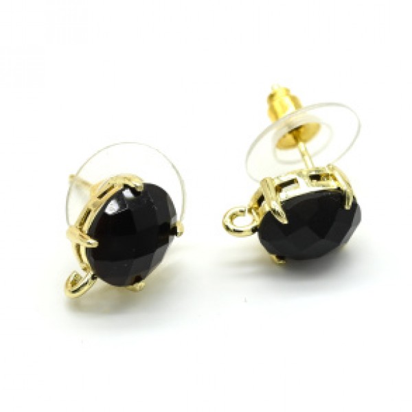 • Пусеты овал гр.7*10мм из агата (имитация), золотистые (иск.)