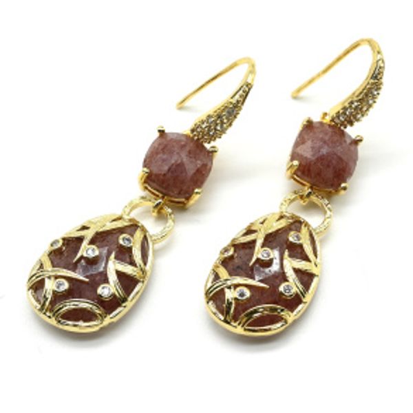 Серьги с камнем клубничный кварц, золотистые