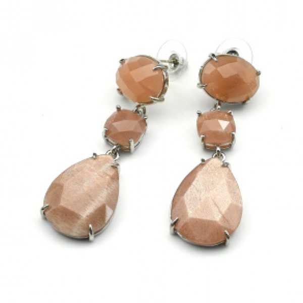 Серьги с солнечным камнем, серебристые
