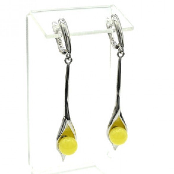 Серьги с янтарём "Калла" шарик 8мм молочный, 4,5см, 6,2г (иск.)