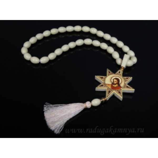 Четки из кости "Звезда с Иисусом" оливки 11*13мм, 50см (иск.)