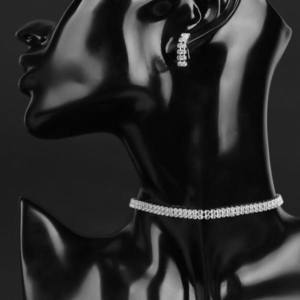 Комплект: серьги, Колье-чокер "Лёд" два ряда, цвет белый, цвет серебристый, 32см