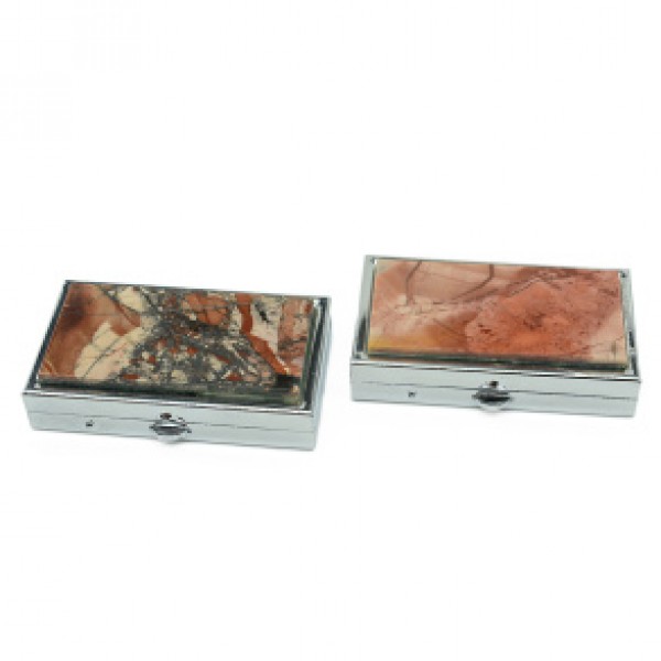 Контейнер для таблеток на 2 отсека с яшмой, серебристый