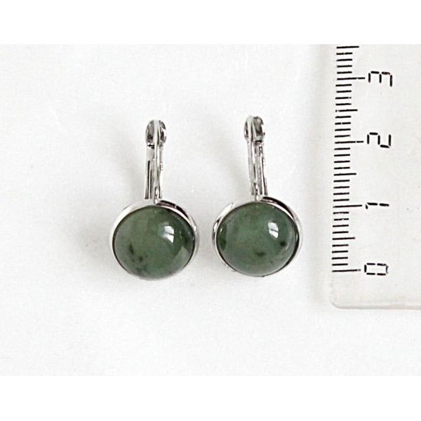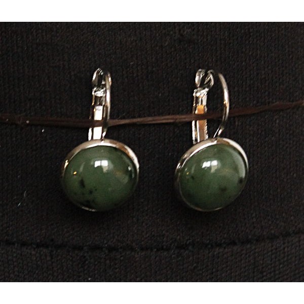 Серьги с нефритом, круг 12мм, замок петелька