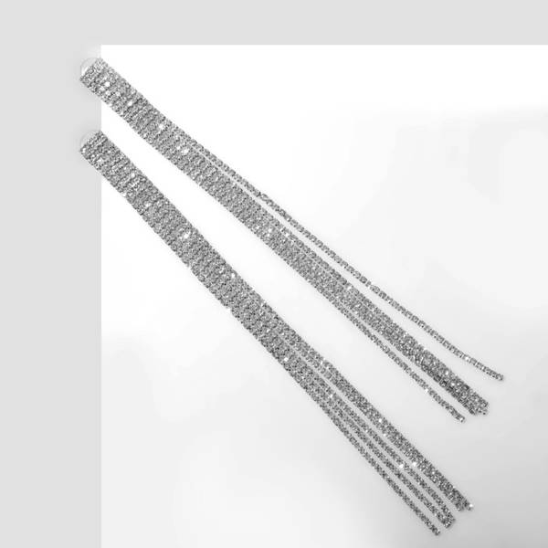Серьги со стразами «Прямоугольник» 30×9 мм, белые, цвет серебристый