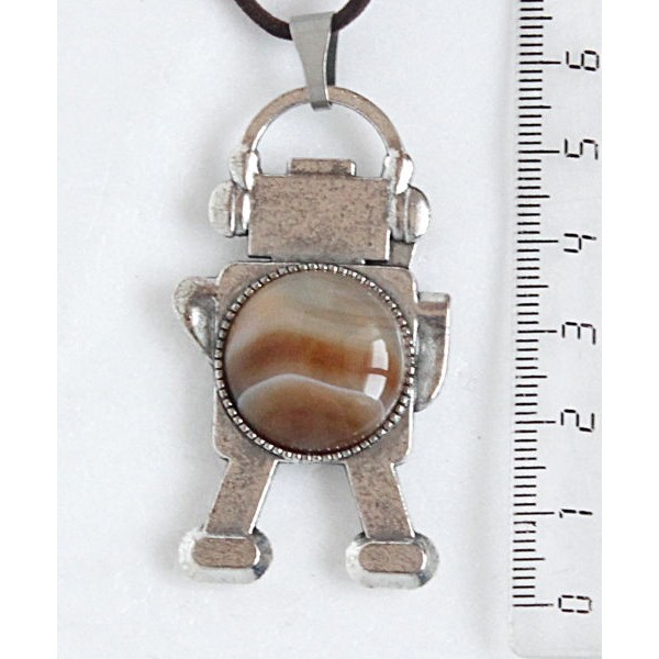 Кулон из агата кофейного (тонировка) "робот", круг 20мм