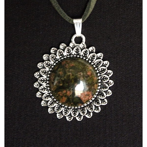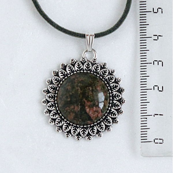 Кулон из унакита, круг 20мм, оправа "4 лепестка"