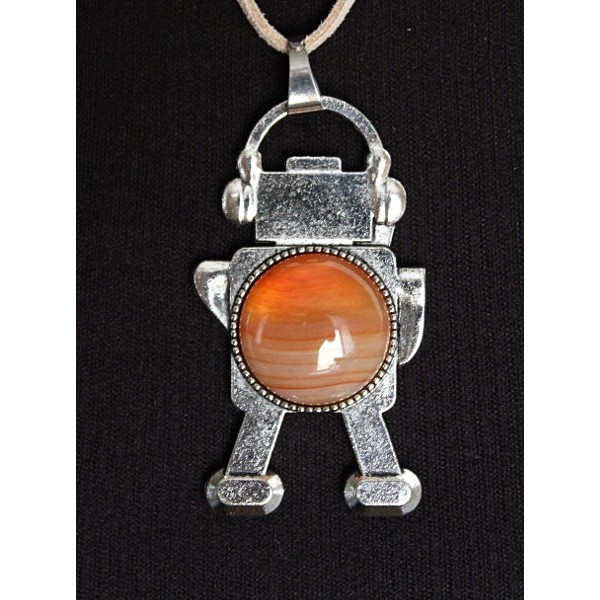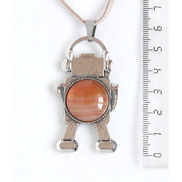 Кулон из агата кофейного (тонировка) "робот", круг..