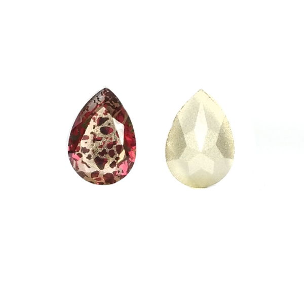 Стразы стеклянные пришивные в цапах Капля 13*8 мм цвет мультиколор розовый, 1 штука