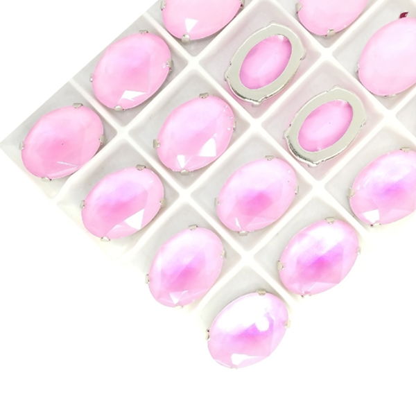Стразы Овал Премиум 10*8 мм светлая фуксия/серебри..
