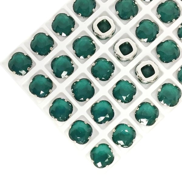 Стразы Кушон Премиум МОКА (Лаковые) 10*10 мм цвет темный изумруд, оправа никель, 1 шт.