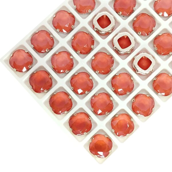 Стразы Кушон Премиум МОКА (Лаковые) 10*10 мм цвет глубокий коралловый, оправа никель, 1 шт.