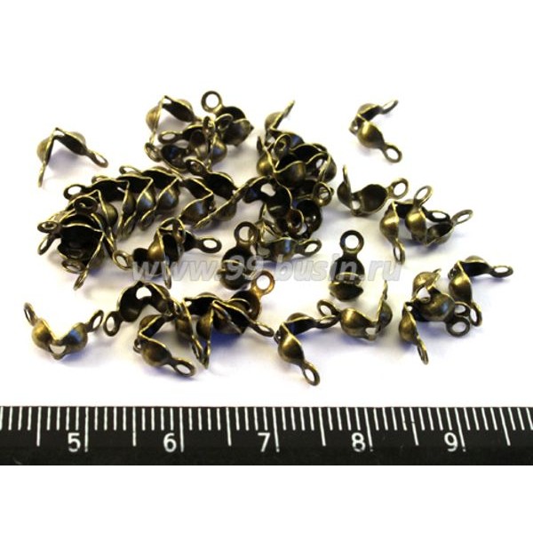 Концевики шарики скуфейки 8*4мм петельки, цвет Бронза 40 шт (20 пар)/упаковка