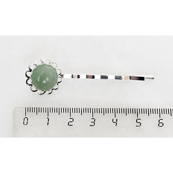 Заколка из авантюрина зелёного 5см, круг 12мм, 4 к..