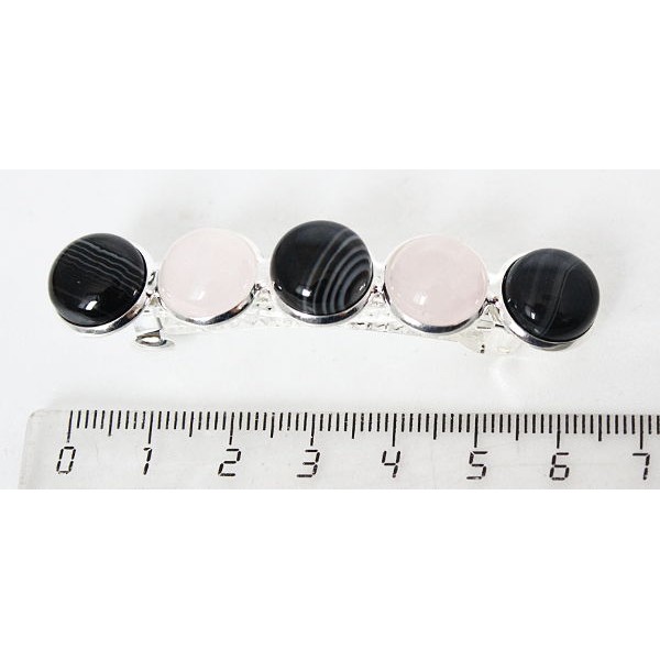 Заколка из агата чёргоно и розового кварца 6см, круг 12мм, 5 камней