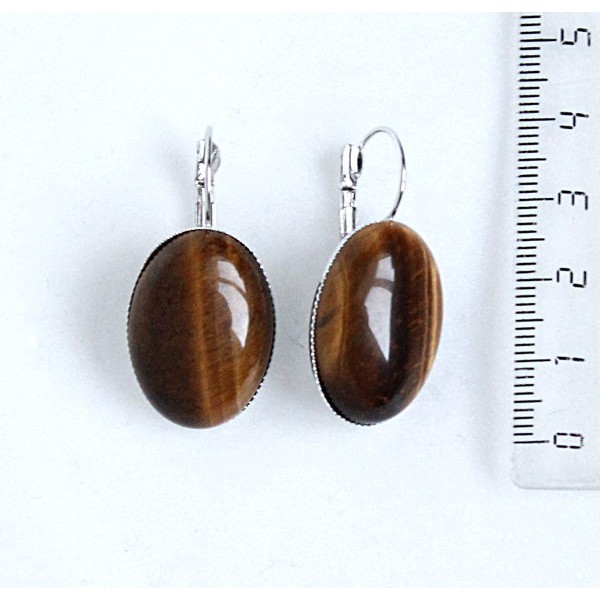 Серьги из тигрового глаза, овал 25х18мм, замок петелька