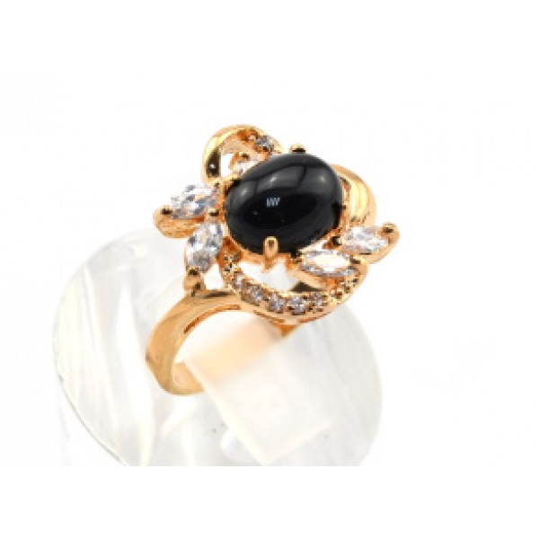 Кольцо позолоченное агат и стразы