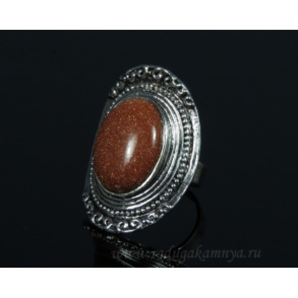 Кольцо с авантюрином 26*37мм в ювелирном сплаве (иск.)