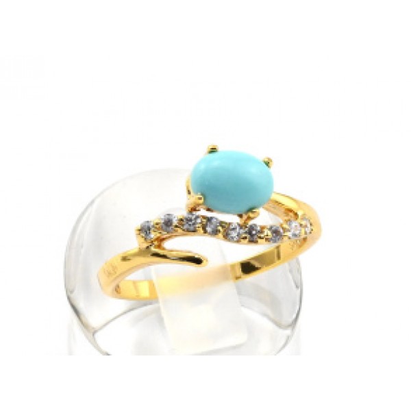 Кольцо женское бирюза (имитация) на стразах, (иск.)
