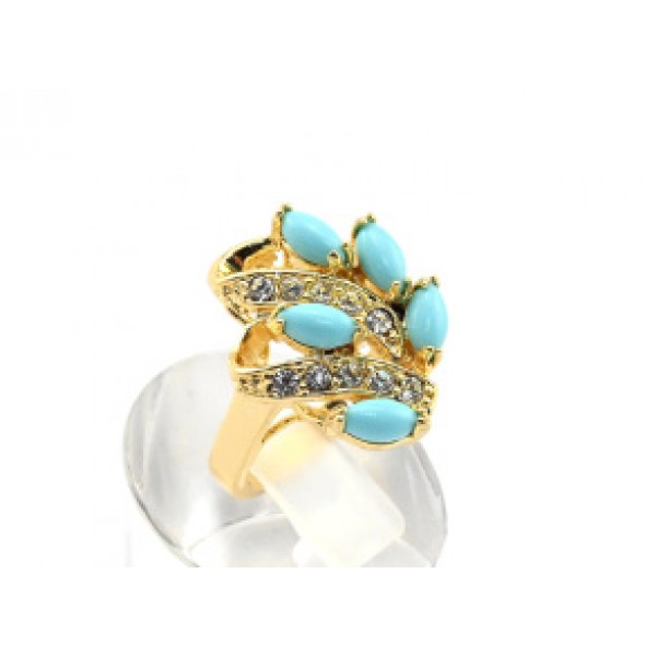 Кольцо позолоченное с бирюзой (имитация) "Волна", (иск.)