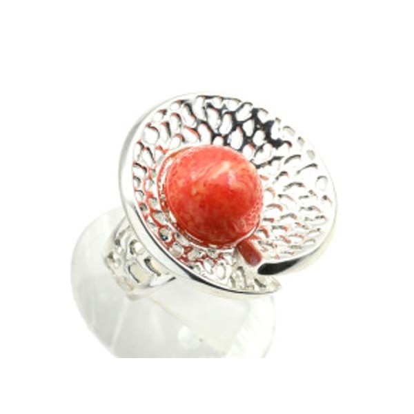 Кольцо c кораллом красным (иск.),  овал 14х10мм