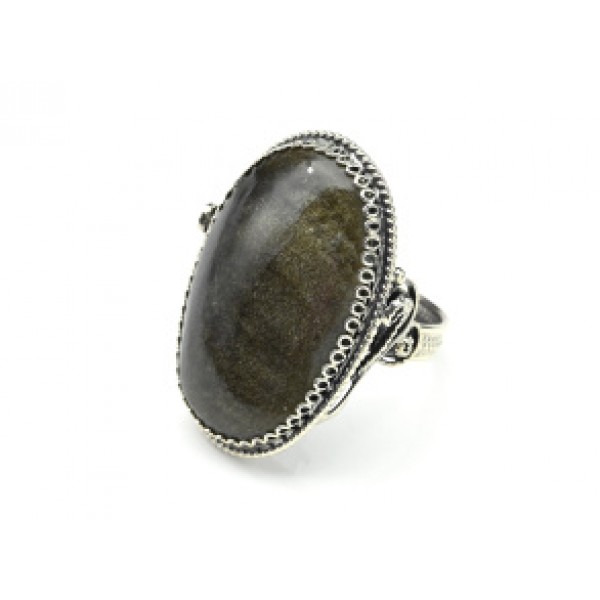 Кольцо золотой обсидиан "Овал" 22*32мм