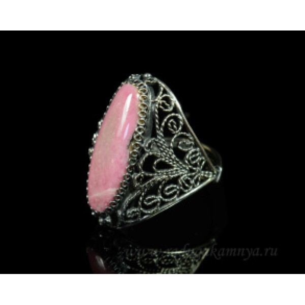Кольцо из родонита, литое широкое, цвет родиум, се..