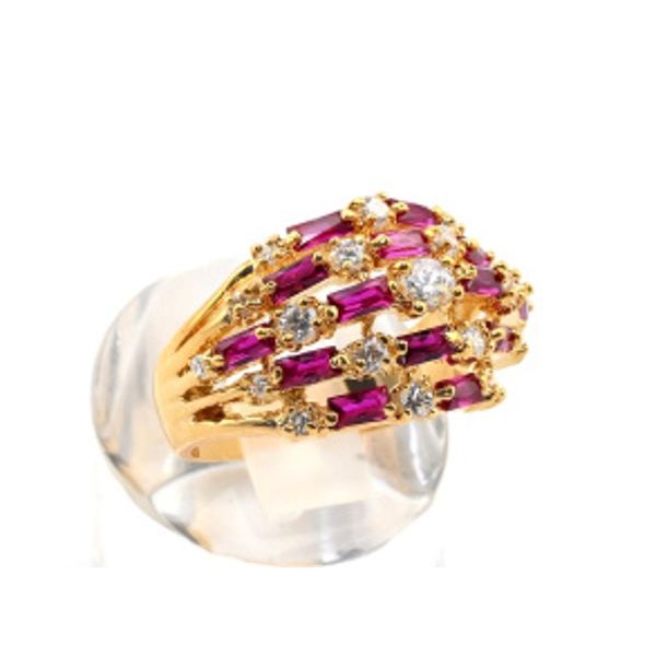 Кольцо женское "Мозаика" с цирконом рубиновым, (иск.)