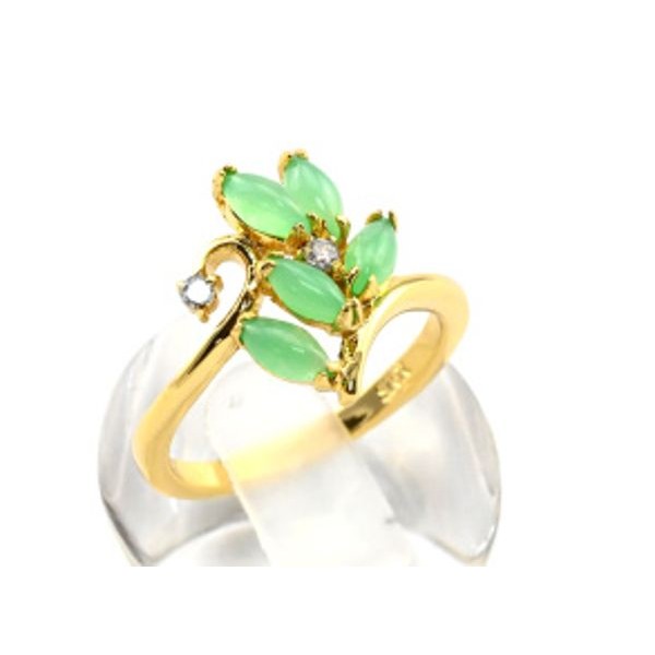 Кольцо позолоченное "Лютик" с хризопразом, (иск.)