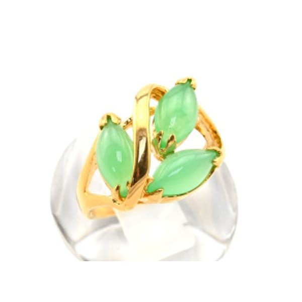 Кольцо позолоченное "Рис" с хризопразом, (иск.)