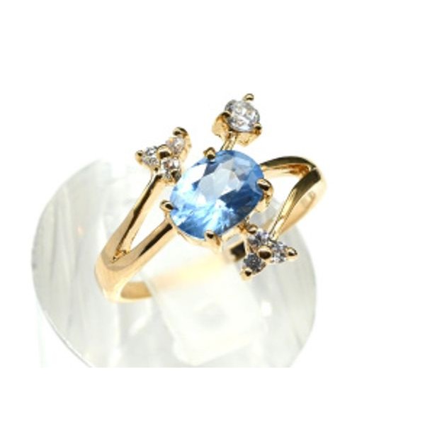 • Кольцо позолота "Веточка" с голубым цирконом,  (иск.)