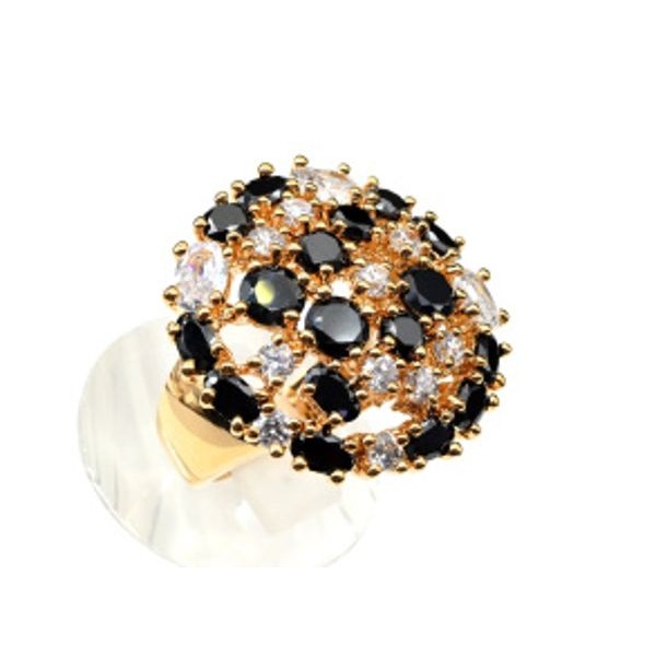 ko56-00187, ko56, ko56-, 56-, 56-00187, кольцо_позолоченное_"россыпь"_с_чёрным, россыпь, циркон_белый, кольцо_циркон_белый
