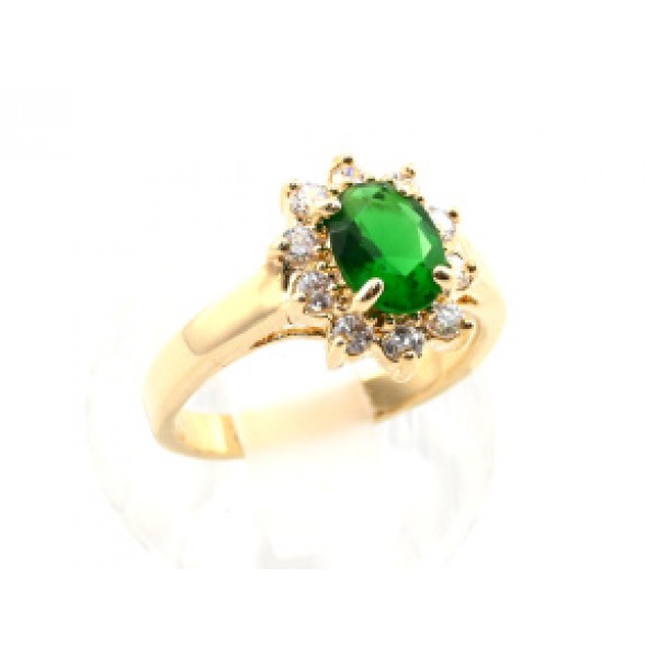 Кольцо позолота с цирконом зелёным, (иск.)
