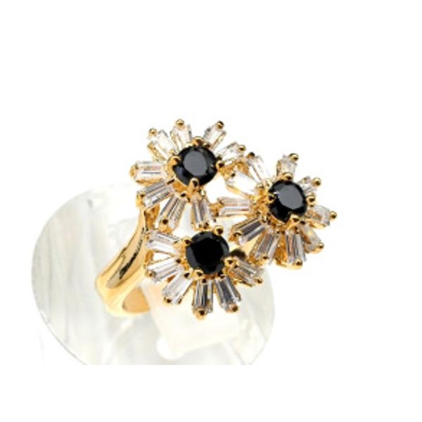ko56-00220, ko56, ko56-, 56-, 56-00220, кольцо_позолоченное_"три_цветка"_с_чёрным, циркон_белый, кольцо_циркон_белый