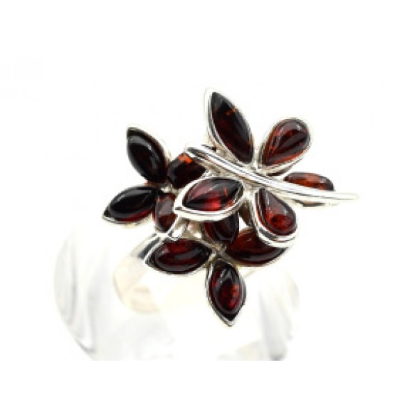 Кольцо с янтарем C925 "букет" 20*22мм коньячный , 4,57гр (иск.)