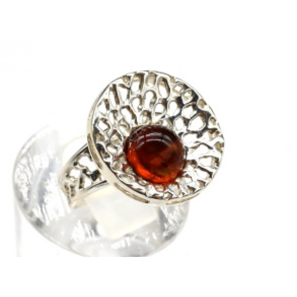 Кольцо с янтарем C925 круг 18мм коньячный , 3,58гр (иск.)