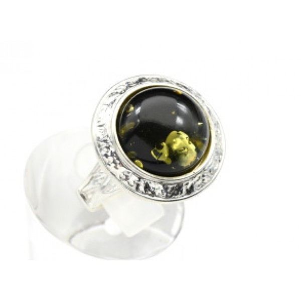 Кольцо с янтарем C925 круг 20мм зеленый , 5,96гр (иск.)