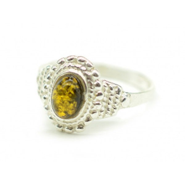 Кольцо с янтарём в посеребрении "нежность" 10*12мм зеленый (иск.)