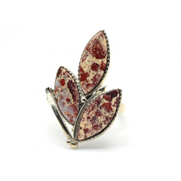 Кольцо яшма крапчатая три листика 20*33мм.