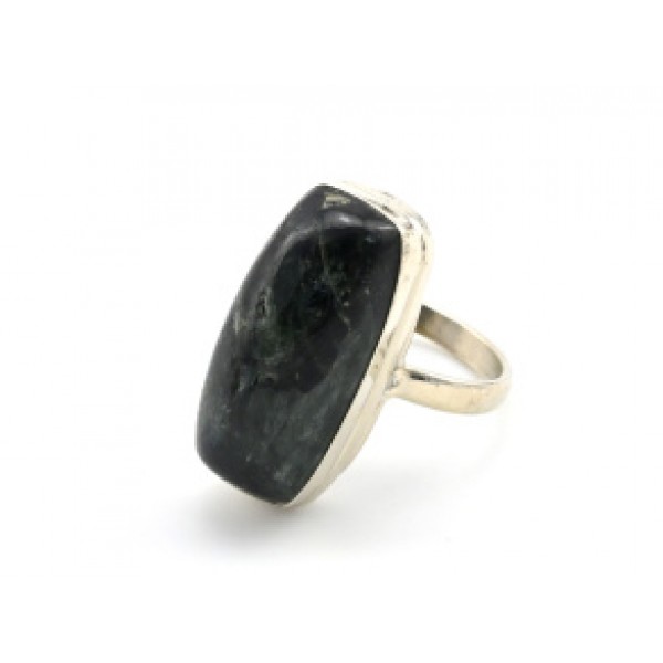 Кольцо актинолит " Прямоугольник " 12*24мм.