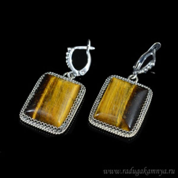 • Серьги тигровый глаз " Прямоугольник " 21*27мм.