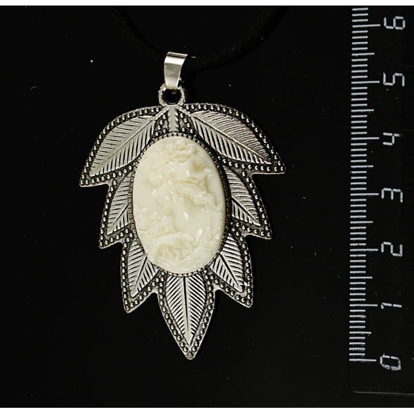 Кулон из крафтовой смолы, цвет белый, кабошон "камея", овал 25х18мм, "лист"