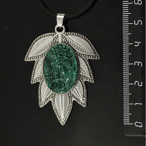 Кулон из крафтовой смолы "камея", цвет зеленый, "лист", цвет ант. серебро, овал 25х18мм