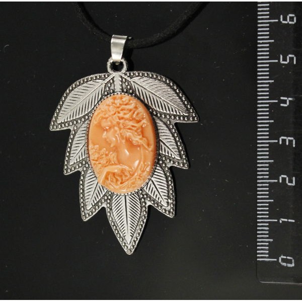 • Кулон из крафтовой смолы "камея", цвет оранжевый, "лист", цвет ант. серебро, овал 25х18мм