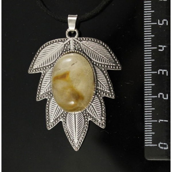 Кулон из халцедона желтого "лист", цвет ант. серебро, овал 25х18мм