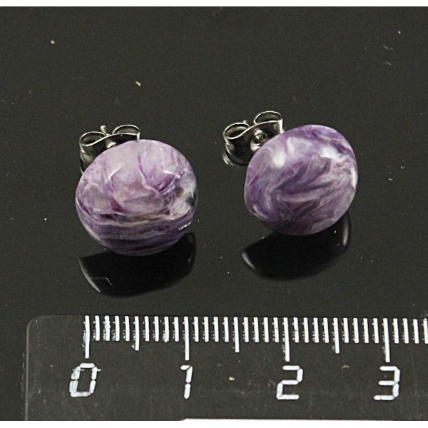 Серьги с чароитом "глаз", круг 12мм, швензы посеребрение